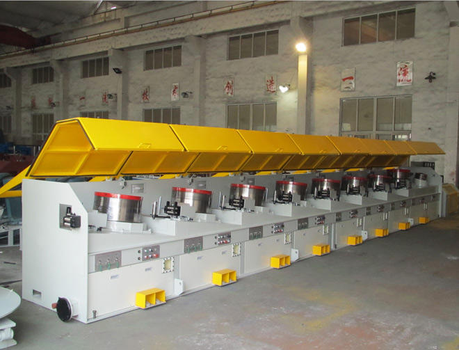 卷筒采用窄縫式水冷,拉絲模采用直接水冷;冷卻效果好; 采用一級(jí)強(qiáng)力窄V帶和一級(jí)平面二次包絡(luò)蝸輪副傳動(dòng),傳動(dòng)效率高、噪音低; 采用全封閉防護(hù)系統(tǒng),安全性好; 采用氣張力調(diào)諧,拉拔平穩(wěn); 采用交流變頻控制技術(shù)(或直流可編程序控制系統(tǒng))、屏幕顯示,自動(dòng)化程度高、操作方便、拉拔的產(chǎn)品質(zhì)量高。